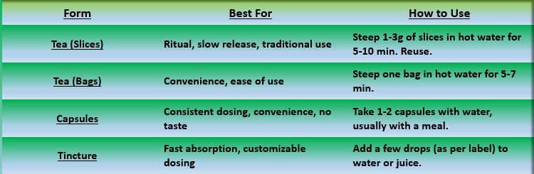 Sliced/Dried Root: This is the traditional and often most potent form.